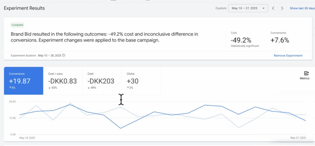 Way too few people use the Experiments feature in Google Ads, especially for brand campaigns. Instead, they just lower their bids and then get confused by seasonality. They see clicks go up or down and can’t tell if it was the bid change or a promotion. Then the client gets nervous and says, “Maybe our competitors overtook us!” and they crank the CPCs back up.