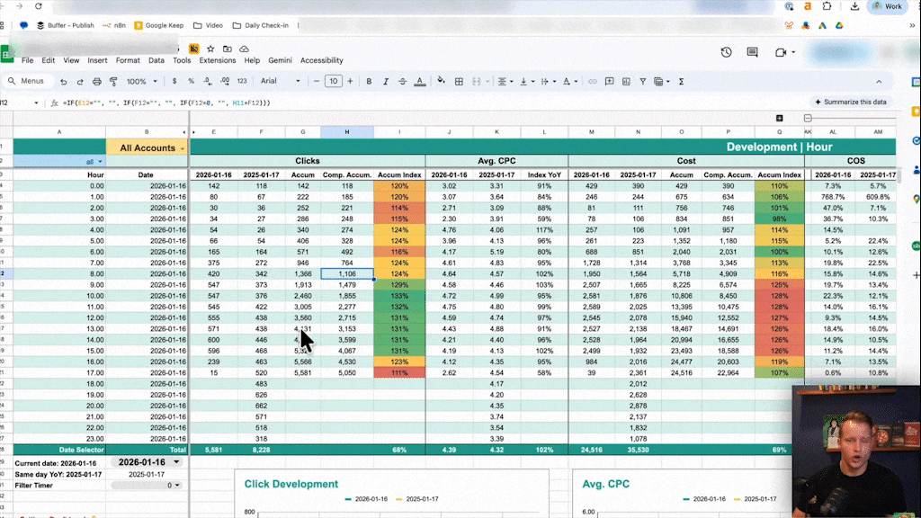You can set up conditional formatting to highlight any campaign where the cost changed by more than 50% day-over-day. This allows you to review dozens of accounts in minutes. It’s not a dashboard for clients; it’s just the raw data you need to ensure nothing is on fire.