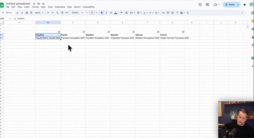 19. AI Functions in Google Sheets: This isn’t a Google Ads update, but it’s genuinely useful. You can now use Gemini directly in Google Sheets. I’ve used it to translate ad headlines into multiple languages right within the sheet, with character count constraints. It’s fast, effective, and saves a ton of time on tedious tasks.