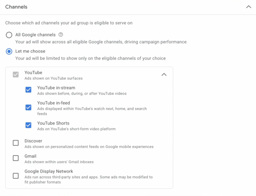 Google didn’t repeat the mistakes of PMax with Demand Gen. They’ve actually given us granular controls at the ad group level. You can choose to run on YouTube in-feed, Shorts, Discover, Gmail, etc. This allows you to focus your budget on the placements that work best and tailor your creative accordingly. If you want to focus on Shorts, you can. If you want to avoid a certain placement, you can. This level of control is exactly what we need.
