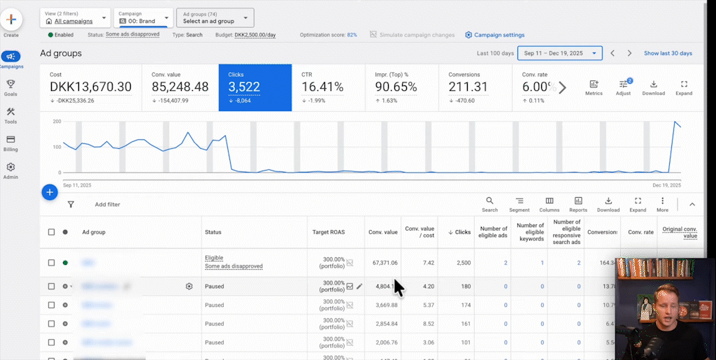 Too many people split up their campaigns based on a LinkedIn post they saw or a structure they think is clever. The result is almost always over-segmentation. Products get scattered randomly throughout the account, and Smart Bidding has a tough time bidding optimally because the data is spread too thin.