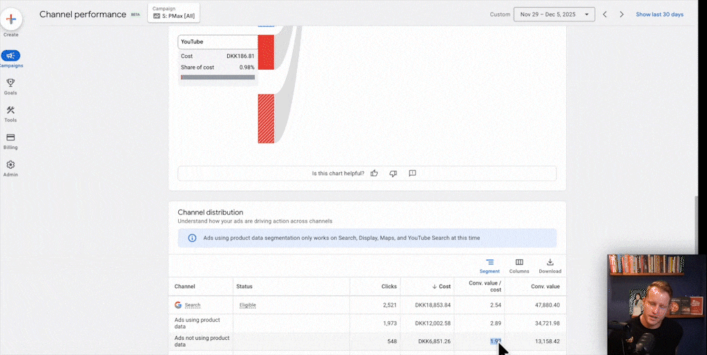 I open these accounts all the time and see that less than 1% of the budget is being spent on anything other than Search and Shopping. Sometimes as little as half a percent. The assumption that PMax is effectively handling your retargeting is often just that—an assumption. Don’t assume; check your channel performance report.