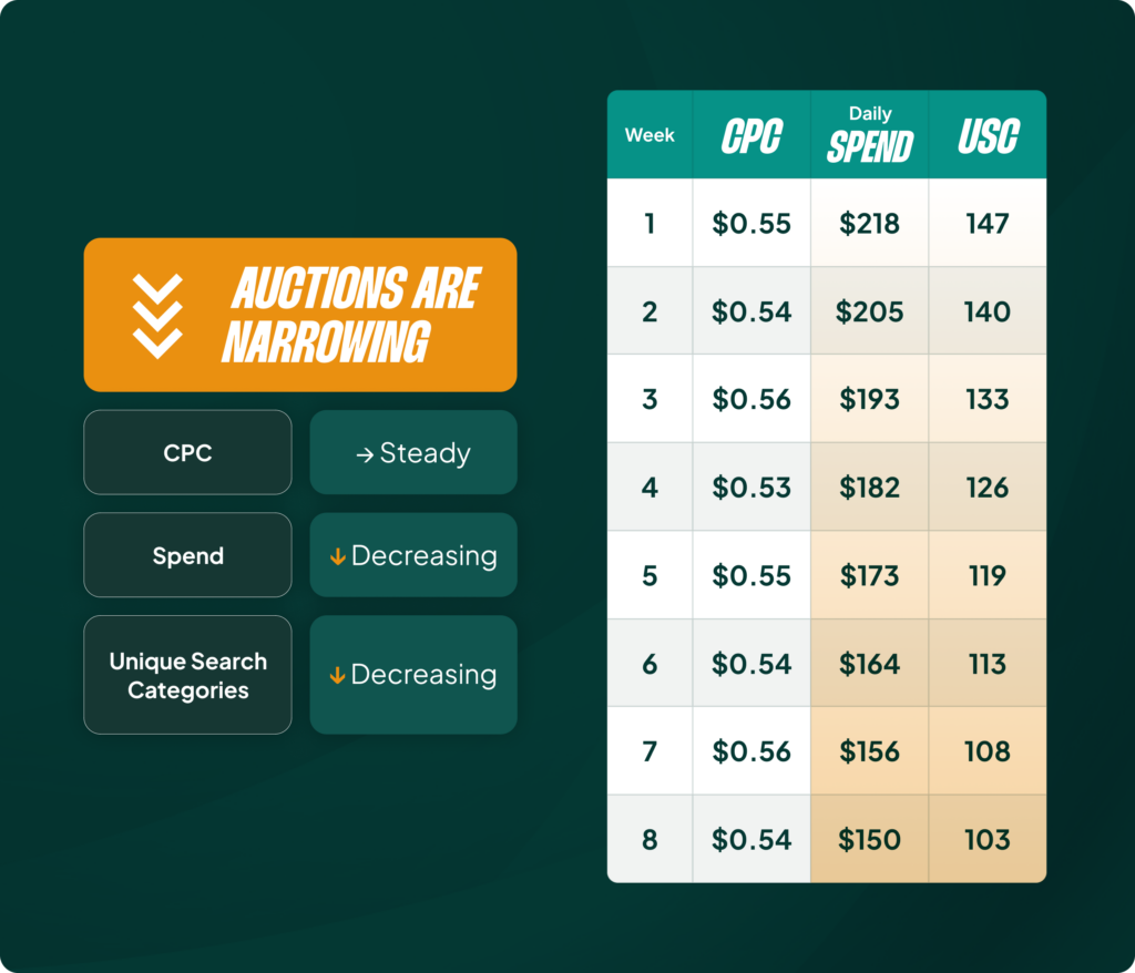 Fortolkningen: Smart Bidding trækker sig ud af mindre effektive auktioner for at konsolidere forbruget på det, der virker bedst.