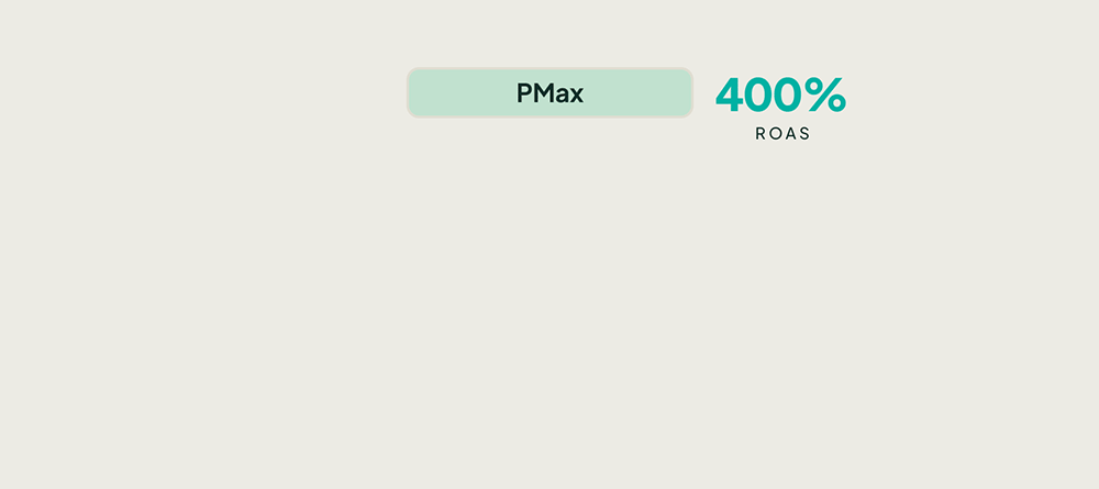 Lad os sige, at din PMax-kampagne havde en samlet ROAS på 400 %. Efter du har ekskluderet brand søgeord, ser du, at non-brand-trafikken i PMax faktisk kun rammer en ROAS på 300 %. Brand-trafikken, der nu strømmer til dine nye kampagner, rammer 900 % eller mere.