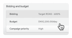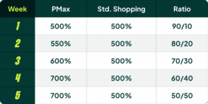 Nu skal du tvinge mere forbrug over på Standard Shopping ved at gøre PMax mindre konkurrencedygtig. Den bedste måde at gøre dette på er ved gradvist at hæve ROAS-målet på PMax.