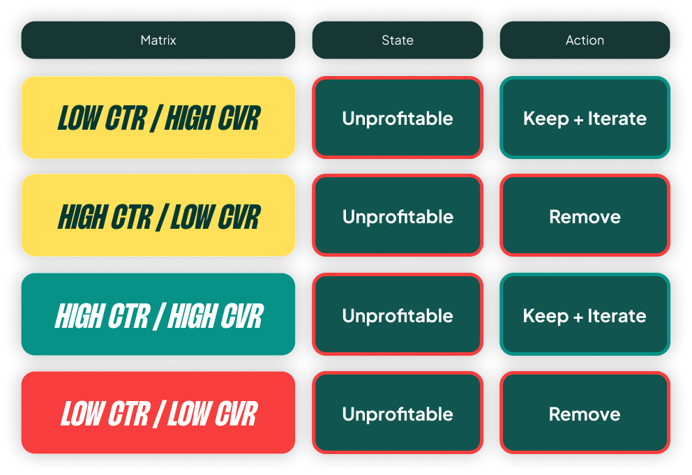 - Høj CTR / Høj konverteringsrate: Vinderne.