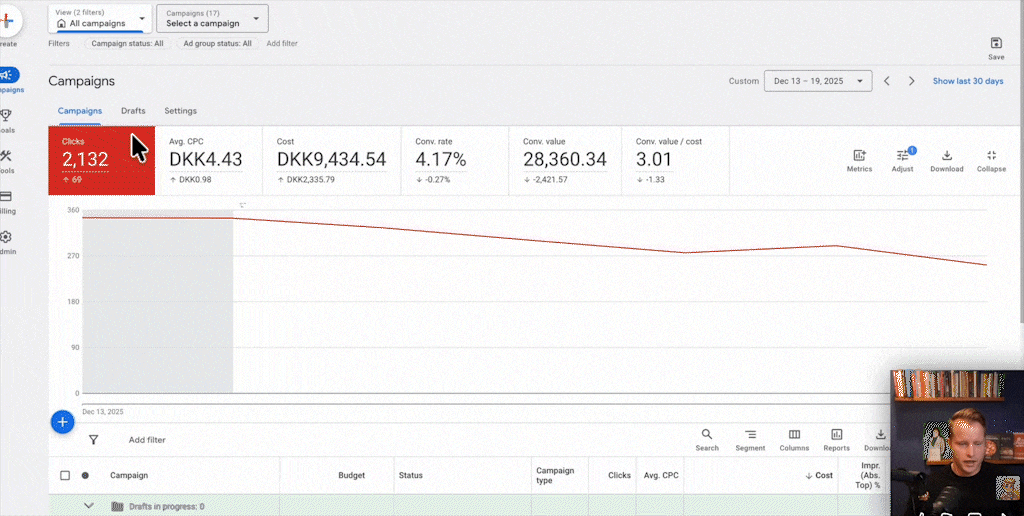 - Jeg anbefaler, at du filtrerer ned til en specifik kampagne for at få mere ren data.