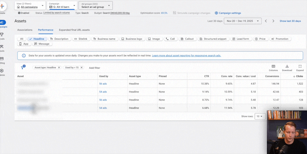 De fleste annoncører skriver overskrifter til responsive søgeannoncer én gang og kigger aldrig på dem igen. Det er et problem. I årevis navigerede vi i blinde, men Google har endelig givet os individuel performance-data for overskrifter: klikrate, konverteringsrate og ROAS for hver eneste overskrift.