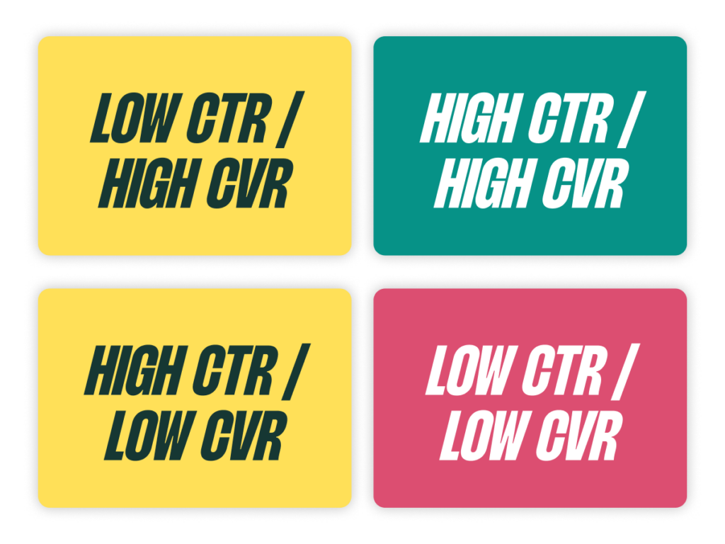 - Høj CTR / Høj konverteringsrate: Vinderne.
